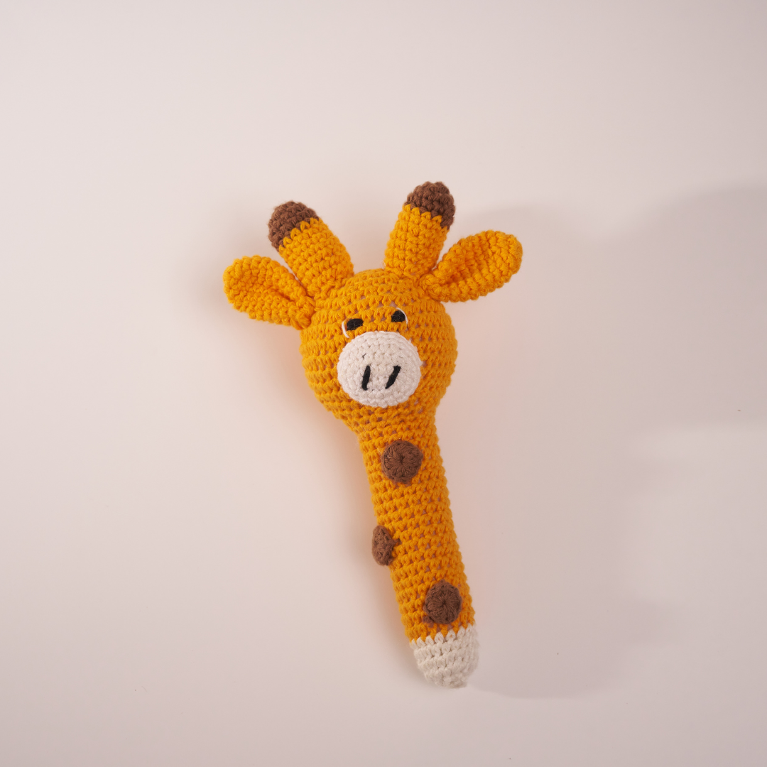 Knitted Crochet Toy Rattle (21 x 16 cm) – Engages your baby’s senses through tactile, visual, and auditory stimulation, promoting early development and serving as a comforting sleep aid.