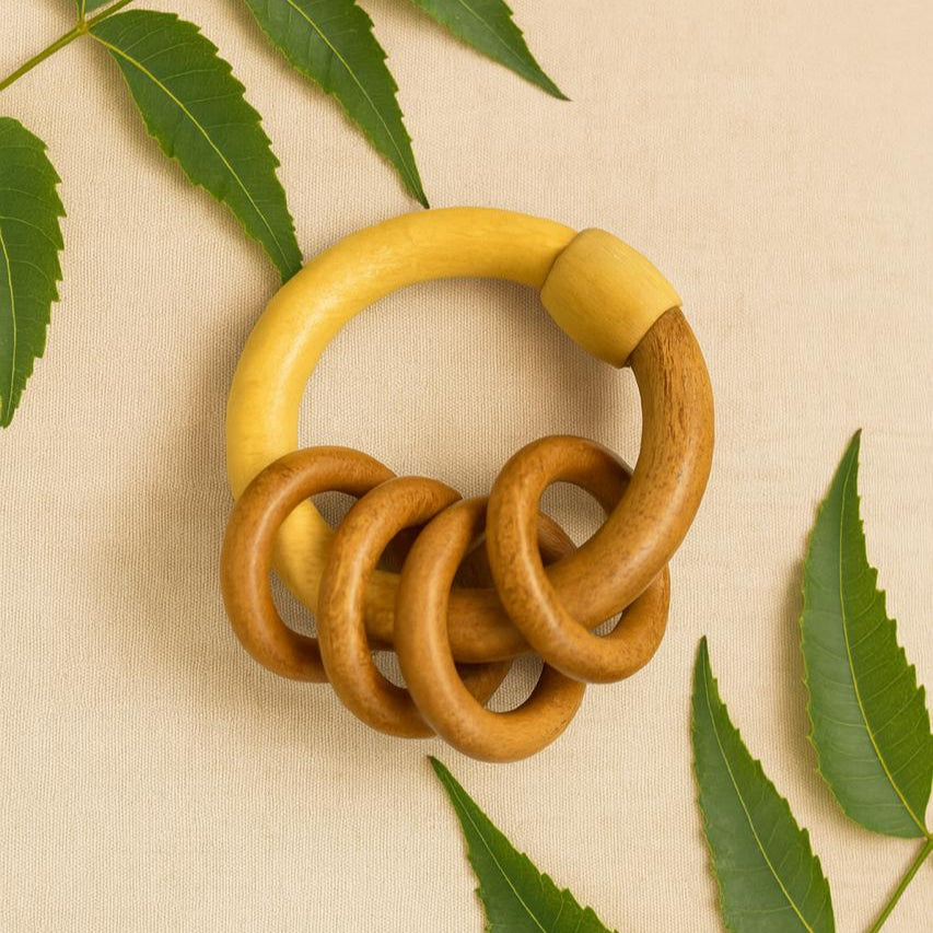 Neem Wood Teether (9 x 10 cm) – Natural herbal teether that soothes aching gums, helps improve grip strength, supports auditory exploration, and comes with anti-fungal and anti-bacterial properties.